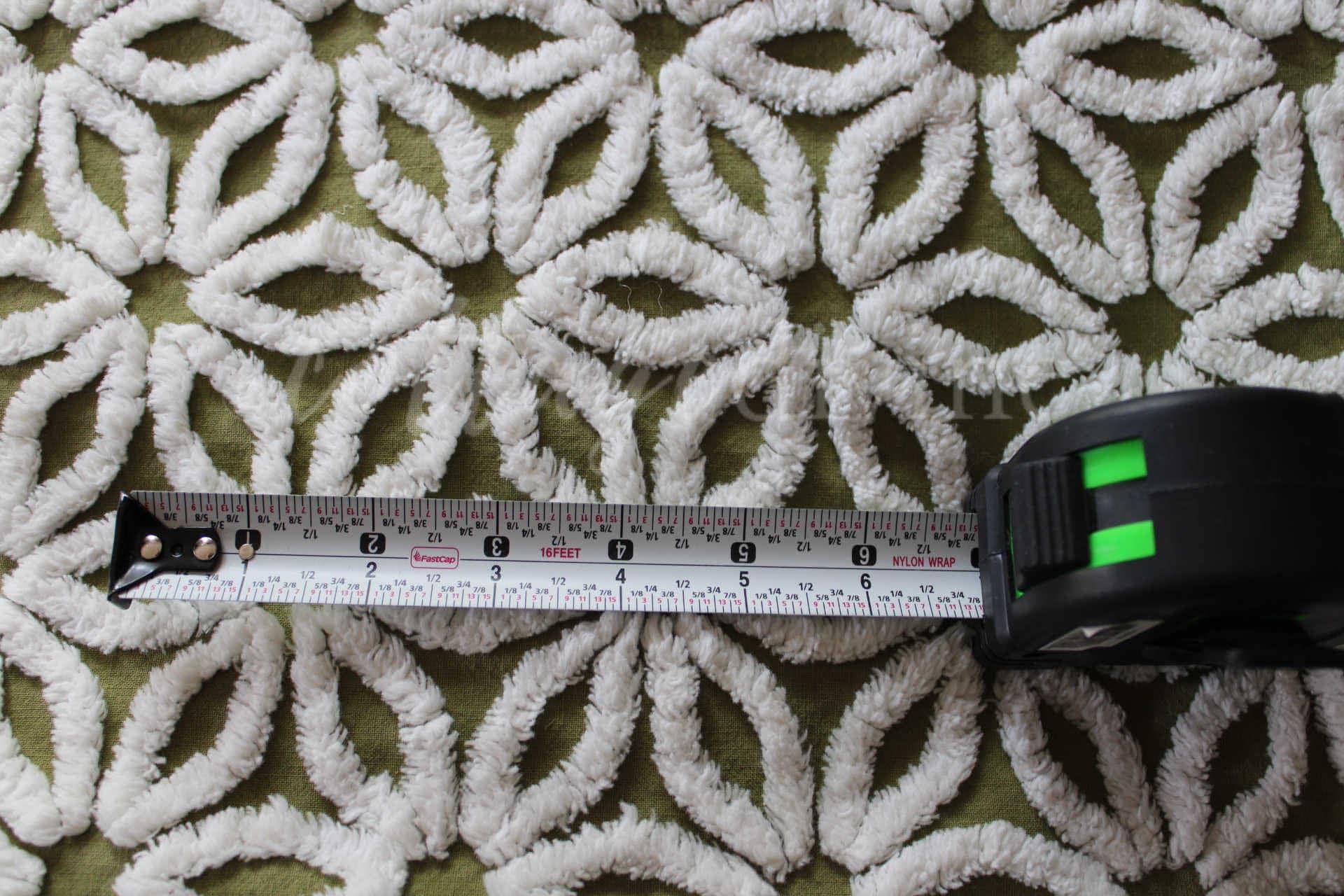 Measures 18" x 24" inches. 100% quality vintage cotton. Soft plush tufting to the daisies. You may notice a minor pinhole, common to vintage Hofmann fabric.